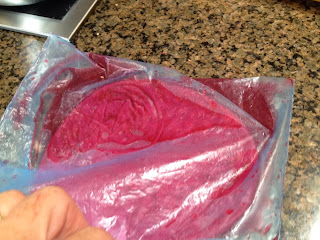 bag, gallon size, a rolling pin, and a container for the juice. I laid the cloth flat on the counter and put